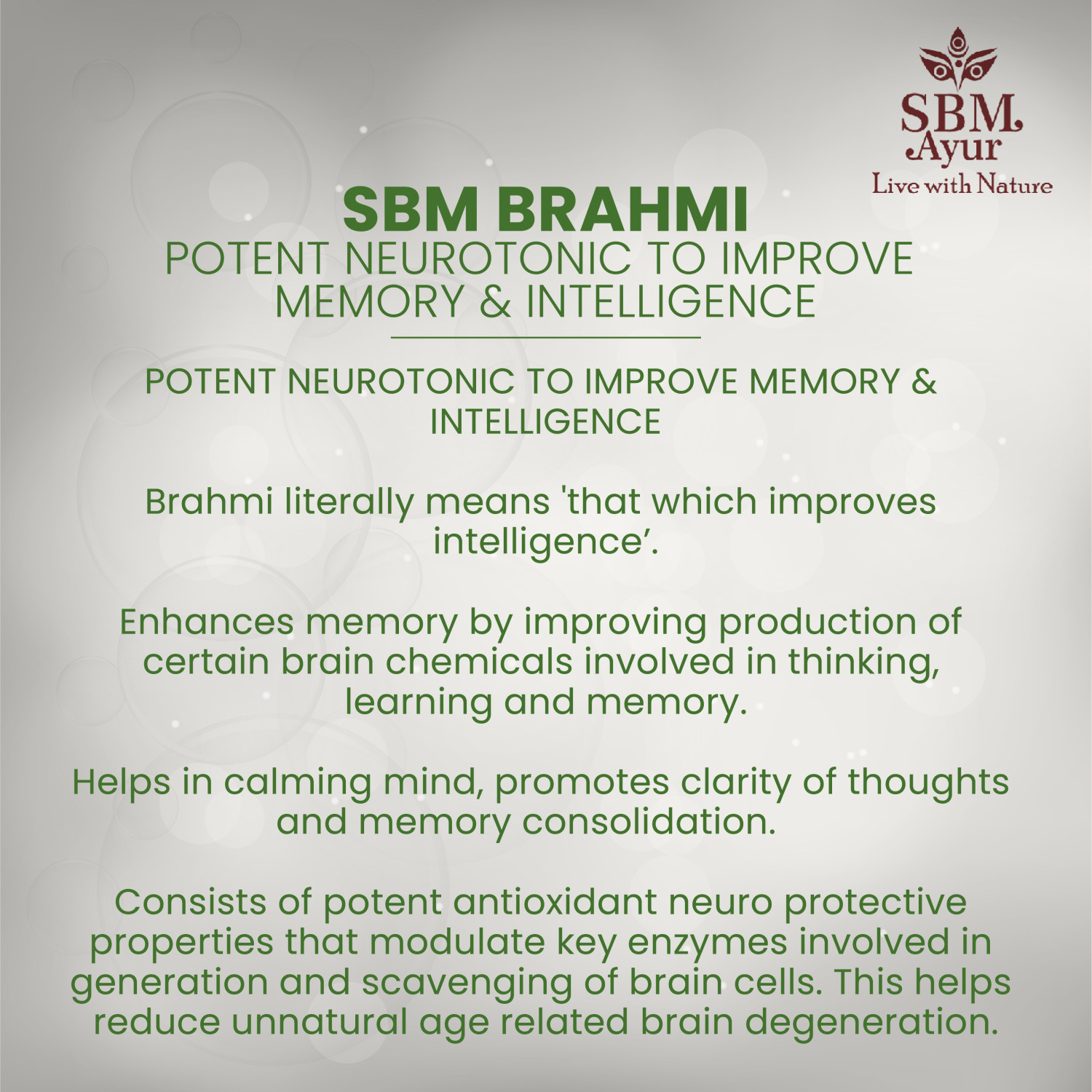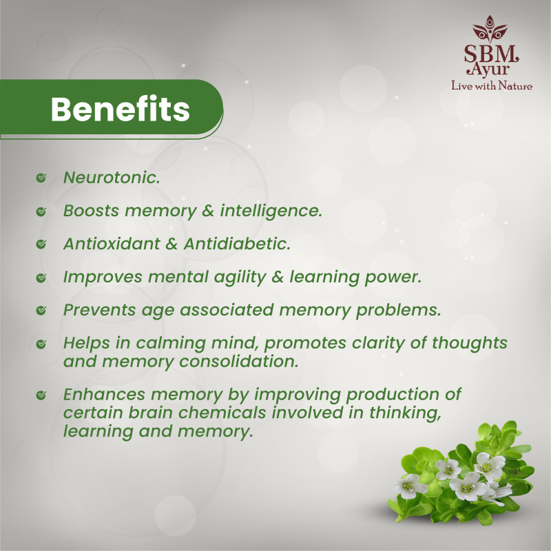 INDICATIONS : Neurotonic, Boosts memory & intelligence, Antioxidant, Antidiabetic.