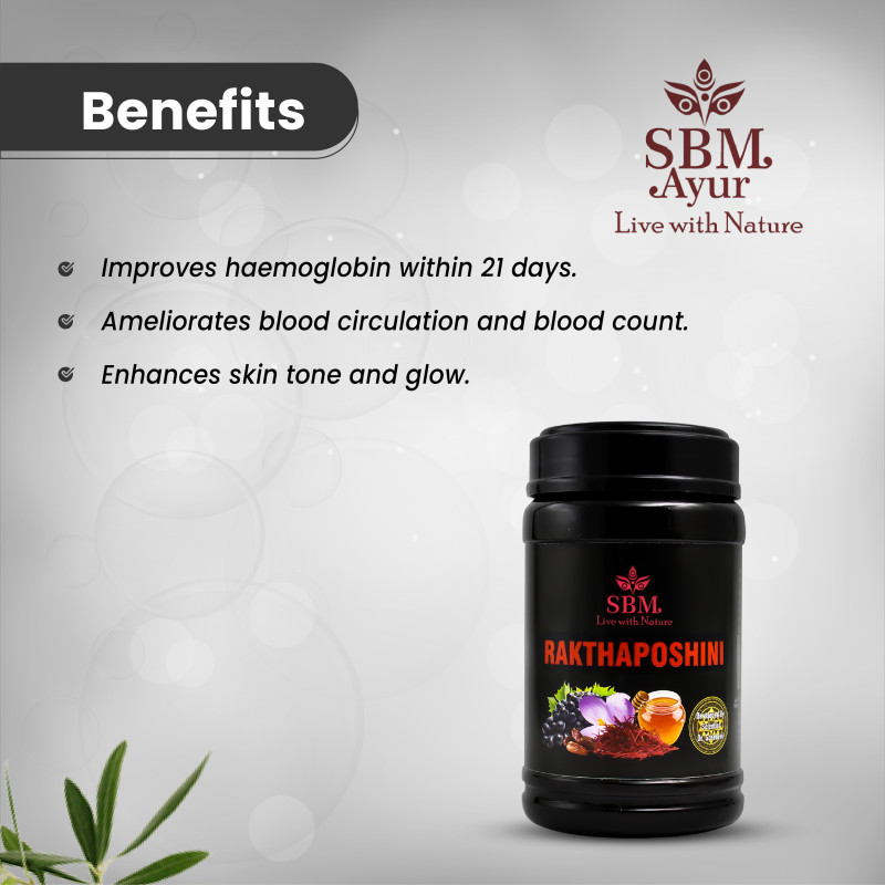 USAGE : Consume 1 teaspoon (5 grams) of SBM Ayur RAKTHAPOSHINI 30 minutes